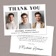 Cartões de agradecimentos de graduação moderno com 3 fotos no meio, "Obrigado" em tipografia elegante e o nome do formando, escola e ano de aula em tipografia simples. Personalize a mensagem do seu obrigado no verso e adicione seu nome em um script semelhante a assinatura.