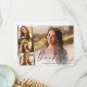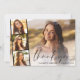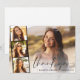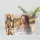 Cartões de agradecimentos de graduação moderno com a foto do formando sobreposta com uma faixa de três fotos quadradas menores, "obrigado você" em um roteiro de na moda, e seu nome, escola e ano de aula em uma simples tipografia. No verso, personalize um obrigado que você envia e o nome do formando em um script semelhante a assinatura.