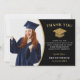 Cartão De Agradecimento Graduação de Foto do Formando Dourado Preto Modern