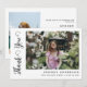 Este cartões de agradecimentos moderno, na moda, mínimo de graduação de fotos apresenta uma foto na frente e uma foto na parte de trás. "Obrigado" escrito em um roteiro elegante. Personalize-o com seus detalhes e duas fotos favoritas.
