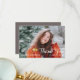Simples e elegante "Obrigado" com um solteiro grande de fotos na frente com o nome do formando e sua mensagem e assinatura únicas no verso. Possui um fundo verde escuro atrás. Design por Holiday Hearts Designs.