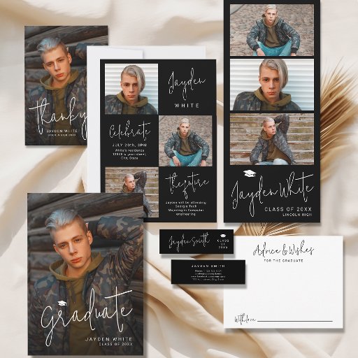 Cartão De Agradecimento Graduação de Fotografias com Script Moderno Simple