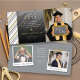 Cartão De Agradecimento Graduação de Fotografias com Stripes de Cinza Dour