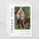 Um cartões de agradecimentos moderno, simples e na moda, de graduação de fotos, com fotos de formando vertical e manchete personalizável. Adicione o nome do formando e da escola. Mensagem personalizada no verso faz uma nota de graduação de obrigados.