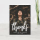 Comemore sua conquista com esta graduação de tendências, obrigado a cartões com sua foto e um na moda de "obrigados" em letras brancas. Personalize a frente desta placa dobrada adicionando seu nome e ano de graduação para um toque personalizado. O dentro oferece muito espaço para sua mensagem de obrigado digitada ou escrita à mão, fazer que seja fácil mostrar apreço aos amigos e à família. Perfeito para formandos que querem combinar a design moderna com a expressão pessoal, estas cartas de agradecimento são uma forma memorável de dizer obrigados pelo seu apoio.