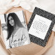 Cartões de agradecimentos de graduação simples e moderno com a foto vertical do formando com "Obrigados" em uma cobertura de script na moda preto. Personalize a frente do cartões de agradecimentos de graduação de fotos adicionando o nome do formando e o ano de graduação. A parte traseira do cartões de agradecimentos de fotos de graduação apresenta um plano de fundo preto e branco desenhado manualmente com espaço para sua mensagem digitada ou manuscrita.
