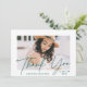 Cartões de agradecimentos de graduação de fotos moderno com a foto do formando com "obrigado você" em uma cobertura de script de caligrafia verde manuscrita. Personalize a frente do cartões de agradecimentos de graduação adicionando o nome do formando. O cartões de agradecimentos de fotos reverte para incluir sua mensagem personalizada com um padrão geométrico verde e branco pontilhado. Remova a mensagem personalizada para escrever manualmente a sua.
