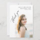 Expresse sua gratidão com elegância usando nosso Cartões de agradecimentos de Graduação de Foto Simples, Formando de Script Moderno. Esta sofisticada design apresenta a tipografia moderna da escrita associada a um layout minimalista. Sua foto tira o palco central, acrescentando um toque pessoal a cada carta e capturando a alegria de sua comemoração de graduação. O design simples e limpo garante que sua gratidão seja transmitida com clareza e estilo. Impressos no estoque de cartão premium com um acabamento suave, nossos cartões de agradecimento não só parecem refinados, como também se sentem luxuosos com o toque. Cada carta é um reflexo da sua apreciação e do entusiasmo da sua jornada de graduação. Envie seus obrigados em estilo com nosso Cartões de agradecimentos de Graduação Simples de Foto do Formando Script Moderno, a maneira perfeita de expressar sua gratidão com sofisticação e graça.
