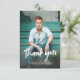 Design de Caligrafia moderna com boné de formatura e fotos em frente e atrás, simples e único. Personalize-o com a sua nota de agradecimento. excelente personalizado cartões de agradecimentos para festa de formatura.