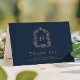 Obrigado seus convidados de graduação com essas elegantes placas marinho azul e rosa rosa-obrigado-você, com um clássico monograma inicial dentro de uma crista vintage. As palavras "obrigado você" aparecem na tipografia decorativa. Adicione seu nome, escola e ano de aula abaixo. O dentro da placa é vazio para que você possa adicionar uma nota manuscrita pessoal a cada amigo ou membro da família.