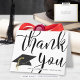 Obrigado de graduação personalizado - você nota cartões que podem ser personalizados com o nome do formando e o ano de classe na frente, juntamente com uma hemorragia de cheio de tamanho excessivo. OBRIGADO com um design de boné de formatura preto e ouro. O dentro de cartão oferece a opção de pré-impressão da mensagem obrigado-você ou opta por excluir o texto de amostra para deixar o vazio dentro para notas de apreciação manuscritas. ASSISTÊNCIA: Para obter ajuda com a modificação ou personalização do design, alteração de cor, redimensionamento, transferência do design para outro produto ou, se você quiser coordenar itens, entre em contato com o designer ANTES DE ENCOMENDAR através da guia MENSAGEM de bate-papo Zazzle ou envie um email para makeitaboutyoustore@gmail.com.