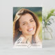 Cartões de agradecimentos de graduação elegante com a foto do formando sobrecarregada com "obrigado você" em um roteiro de na moda e seu nome, escola e ano de aula em uma simples tipografia. No verso, personalize um obrigado que você envia e adicione o nome do formando em um script semelhante a assinatura.