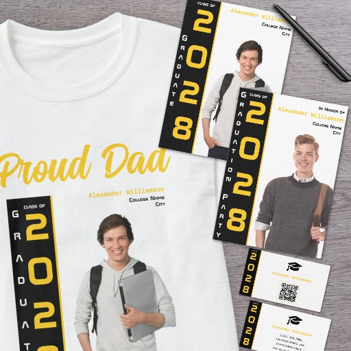 Esse design preto e ouro é ousado e moderno, adequado para indivíduos dinâmicos e entusiastas. Fortes tipografias e elementos de alto contraste dão-lhe uma aparência contemporânea. Versátil e profissional, ele funciona em vários produtos de impressão a pedido, incluindo convites para graduação, banners, placas de jardim, t-shirts e adesivos. Suas linhas limpas e composição estruturada fazem dela uma escolha sólida para celebrar seu sucesso! Para suporte ao design, envie um e-mail para remidevandesigns@gmail.com RemideVan©