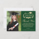 Elegante cartões de agradecimentos de graduação em verde e ouro com "Classe de" em ilustração da coroa de louros com um boné de formando e diploma, uma foto do formando, "Obrigado" em uma escrita formal, e um obrigado personalizado que você envia e o nome do formando em tipografia de serifa clássica.