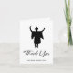 Cartões de agradecimentos moderno para sua graduação apresentando uma ilustração da silhueta de um formando feliz celebrando em seu boné e vestido, "Obrigado" em um roteiro de na moda e seu nome em uma simples tipografia. Adicione um obrigado personalizado no dentro e seu nome em um script semelhante a assinatura ou deixe vazio para uma nota manuscrita.