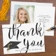 Cartões de agradecimentos de fotos da graduação moderna com tipografia do roteiro de caligrafia moderna do rico, OBRIGADO COM um boné de formatura preto e personalizado com o nome do formando e ano de aula na frente. O verso apresenta a imagem do seu formando e uma mensagem pré-impressa ou opta por eliminar o texto de amostra para deixar o vazio de área para notas de apreciação manuscritas. OPÇÕES: O exemplo é mostrado no tamanho de 5x7"; outros tamanhos estão disponíveis na página de pedidos. ASSISTÊNCIA: para obter ajuda sobre modificação ou personalização do design, alteração de cor, redimensionamento ou, se você quiser coordenar itens, entre em contato com o designer ANTES DE ENCOMENDAR, por meio da guia MENSAGEM de Bate-papo Zazzle abaixo ou envie um e-mail para makeitaboutyoustore@gmail.com.