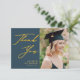 Cartão De Agradecimento Graduação Simples Azul Dusty Script Dourado Elegan