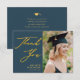 Cartões de agradecimentos Elegante de Graduação de Foto Minimalista Azul Dusty Script Dourado. Dê Uau Obrigados para sua família e amigos com esse belo cartões de agradecimentos. Todos os textos estão pré-organizados para que você personalize fácil e rapidamente com suas próprias palavras.