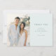 These wedding thank you cards feature a modern and minimalistic design with a balanced layout, showcasing a soft pastel color palette. The left side includes a placeholder for a photograph, while the right side offers a calming pale blue-green background with centered typography. The clean lines and smooth gradients create an elegant aesthetic, perfect for expressing gratitude to guests. With customizable text elements, these cards are ideal for personalizing your post-wedding thank you notes, capturing the warmth and celebration of your special day.