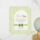 Wedding thank you cards in green stripes feature heartfelt "Thank You" message on front - with customizable names/date and bow. Back showcases arched custom couple photo with monogram, perfect for post‑wedding notes.