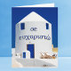 Um quarto de hotel em forma de torre em Santorin, Grécia contra um céu azul profundo, faz uma bela imagem para este cartão, que você vai querer usar se tiver parentes ou amigos gregos. Também é um presente perfeito para um professor de classe ou estudante de línguas antigas.