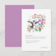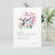 Agradeça aos convidados do seu aniversário com este cartão de agradecimento com um beija-flor em aquarela com uma grinalda floral em um fundo branco.