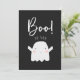 Frente com um cartão tipográfico preto elegante com cartas divertidas dizendo "Boo! para você" com um espaço de vazio de arte fantasma para adicionar uma mensagem pessoal manuscrita. Um cartão divertido para enviar suas mensagens de Halloween para clientes, clientes, família e amigos. Entre em contato comigo se desejar mais personalização. Você pode encontrar mais Designs de Halloween e outono no meu compro