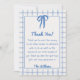 Cartão De Agradecimento Hand Drawn Blue Bow Gingham Bow Baby Shower