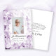 Mostre apreço aos seus convidados por lembrarem seu ente querido depois que eles passaram na Celebração do Life Memorial com o elegante Purple Hydrangea Flower Watercolor Simpatiy Flat Obrigado Nota Card. Este elegante obrigado personalizado de homenagem à morte florida que você apresenta uma fotografia floral pintada de cor d'água, pintada por uma pintura digital, de flores de hydrangea ligeiramente roxas, com um fundo branco. Personalize-o com uma fotografia do falecido, das datas de nascimento e morte e da sua mensagem pessoal no verso.