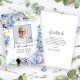 Mostre apreço aos seus convidados por lembrarem do seu ente querido depois de terem passado na Celebração do Life Memorial com o elegante Blue Hydrangea Flower Watercolor Sympathy Flat Obrigado Note Card. Este elegante obrigado de tributo fúnebre personalizado que você apresenta uma fotografia floral pintada por uma coloração d'água, de flores claras azul de hydrangea, com um fundo branco.