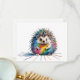 Ein freundlicher Igel in bunten Farben, eine kindliche Zeichnung eines Igels, mit Tusche und Kreide, gekleckst und geschmierte ist die Farben als Stil und Effekt des lustigen Bildes.
