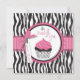 Impressão da zebra do estilo do boutique com acentos do rosa quente e uns cartões de agradecimentos do cupcake do doce.