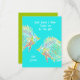 Nota de agradecimento para crianças enviarem com ilustração de peixe tropical. Dois peixes coloridos nadam sobre um fundo azul aqua brilhante. Personalize com texto em dois lugares na frente. Um curto “obrigado” com assinatura é sugerido. O verso é verde abacate sólido.