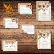 O outono é uma bela época para um casamento, e as cores deste Cartões de agradecimentos mostram-no. Os tons de terra macia de ferrugem, castanha, bronzeada e creme com folhagem verde-suja são espalhados com uma falso borda de ouro. Este cartão, que faz parte do Fall Floral Buquê Invitation Suite de cartas criadas pela Simply Farmhouse Press, também está disponível com a dourada para um olhar mais bonito.