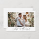 trendy minimal script we got married wedding announcement, rustic boho design with editable text and images.