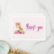 Cartão De Agradecimento Laranja de Aquarela Cat e Floral Roxo Aniversário