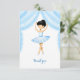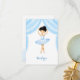 Lindo cartão de agradecimento tema de ballet para a festa da sua filha. Ilustração de uma pequena bailarina morena de tutu azul em tons de azul claro.