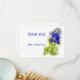 Uma fotografia única "de um tipo" de uma flor do Texas Bluebonnet com caule e folhas. Um fecho das pétalas azuis e um fundo macio que desaparece para o branco. Um design moderno do tipo na cor azul da flor. Preencha com suas informações de casamento na parte de trás deste conjunto único de convites para o casamento.