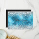 Lindo cartão de agradecimento monograma com brilho prateado e turquesa. Cartão de Natal cintilante e fofo. Perfeito para enviar para familiares ou amigos durante a época de festas, aniversários ou qualquer outra ocasião. Para torná-lo ainda mais especial, é adornado com belo brilho falso. Este design também pode ser transferido para qualquer produto na Zazzle. Você pode personalizá-lo com seu próprio texto e informações.