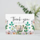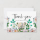 Lindo cartão de nota de agradecimento azul com flores de aguarela pastel.
