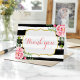 Cartão De Agradecimento Listras Florais de Aquarela com Brilho Dourado Obr