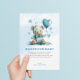 Este chá de fraldas fofo, livros para o design bebê apresenta um adorável ursinho de pelúcia a aquarela com balões em forma cardíaca e tipografia azul e negra personalizável.