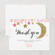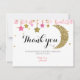 Cartão de agradecimento lua cor-de-rosa com brilho dourado