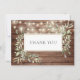 Apresentando luzes de cordas, madeira rústica e delicada cor d'água verde folhas moldadas em seu obrigado que você define em um texto elegante. Você pode personalizar com seu próprio obrigado a mensagem no reverso ou se preferir adicionar sua própria mensagem manuscrita, exclua o texto. Uma maneira perfeita de dizer obrigado! Projetado por Thisnotme©