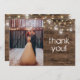 Este lindo e elegante cartão de agradecimento é o final perfeito para um casamento perfeito! O cartão apresenta potes de mason e luzes de corda em um fundo de madeira rústica. Fácil de personalizar com seus próprios nomes e sentimento de agradecimento. Por favor, entre em contato comigo para quaisquer personalizações adicionais de design que você possa precisar para o seu belo casamento. Design © por TK Goforth. Para itens coordenados, visite minha coleção de Casamento de Potes de Mason Rústicos e Luzes de Corda e minha loja na Zazzle: