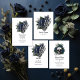 Cujo esqueleto floral gótico floral, branco, cartões de agradecimentos de casamento manual em sotaque de azul marinho e preto personalizável para suas especificidades de evento.