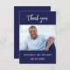 Um aniversário Obrigado, cartão com fotos. Um fundo azul marinho. Personalize e adicione sua foto e obrigado nota.