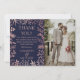 Cartão De Agradecimento Marinho Elegante E Foto Dourada De Casamento Flora