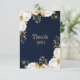 flores brancas românticas e ouro folhas cartões de agradecimentos azul-marinho botânico