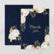 Cartão De Agradecimento marinho floral branco de ouro azul